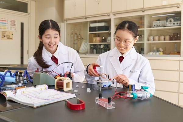 Active Scienceは、理科の授業を通して論理的・批判的思考力を育む本学園独自の取り組みです。実験や観察を軸とした、生徒の活動中心の授業を行います。「正解」が一つでない問いに取り組むことで、理科に対する苦手意識を減らし、主体的に取り組む力、自主的に思考する力、言語・コミュニケーション能力を養います。本学園はみらいを創造する女性の育成を目指しています。
