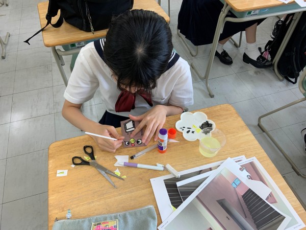 Clym 氏は、文字や形をモチーフに、自身の想像力を自由に表現する独創的なアーティスト。その発想をもとに、生徒たちは学校名 “JISSEN” の文字を使って、「House(家)」というテーマをひねりながら、オリジナルのデザイン作品を制作しました。