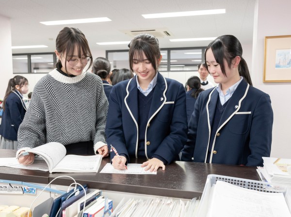 聖セシリアは1クラス35名4クラス編成の少人数制の学校なので、ていねいに勉強を見てもらえます。また、授業は月~金までで土曜日はお休みです。そんな土曜日は「土曜講座」といって、自分で好きな授業を選べる一日になっています。習い事でやるようなお菓子作り教室や生け花教室もあれば、塾でやるような受験対策講座までさまざま!土曜講座を活用し、塾なしで自分の希望進路を獲得できます。