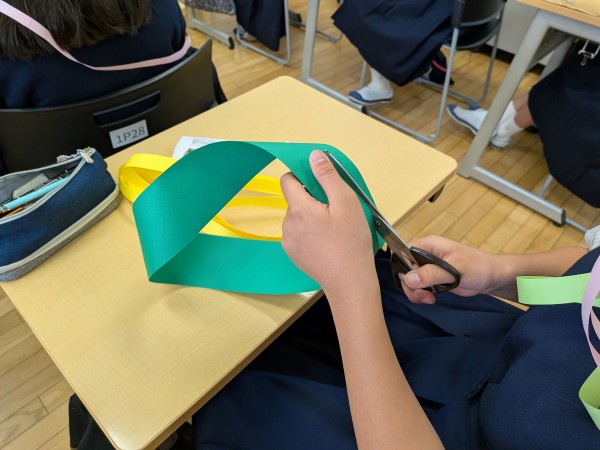 「CTM」とはChallenge Top level Mathmaticsの略☆算数一科型入試合格者と数学の成績優秀者が対象の講座です。登校日ではない土曜の午前中に行われ、学年を先取りした内容や難問演習、数学探究に挑戦しています。さて「メビウスの輪」は2等分や3等分したらどんな形?