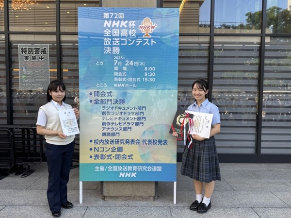 放送部は、第72回NHK杯全国高校放送コンテストに出場し、準々決勝、準決勝、決勝と駒を進めてきました。高校生3名が朗読部門で優良賞、アナウンス部門で準決勝進出、準々決勝進出という成績を残しました。放送部で、NHK杯全国高校放送コンテストの朗読部門で、ベスト10入りしたのは、初めてのことでまさに快挙でした!中学生、高校生ともに仲間と切磋琢磨しあい練習に励んでいます。