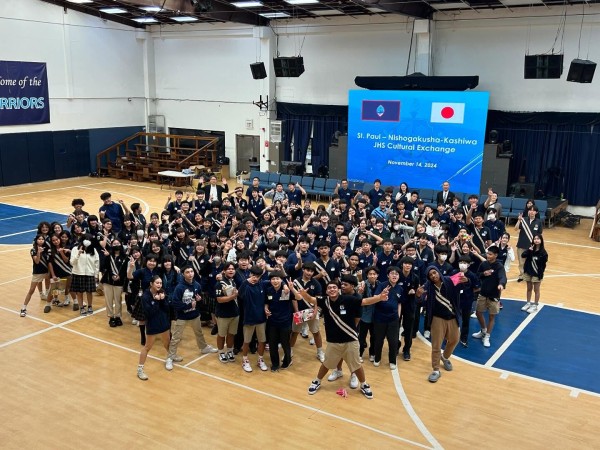 中学3年生の11月に世界の教室「グアム修学旅行」を実施しています。これは中1で柏や手賀沼を中心とした地域、中2では日本の文化を、中3では視野を世界に向ける取組みとして、現地中学校との交流やチャモロ文化体験、平和学習など、グアムでしかできない経験を積んでいきます。そして、3年間の探究の集大成として卒業論文「自問自答」を作成していきます。