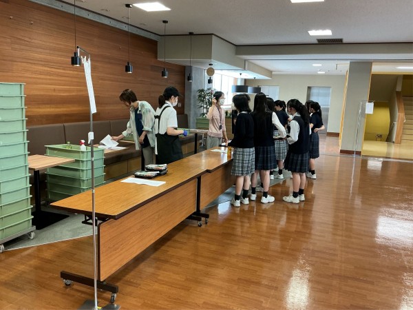 中高で約60名の部員数を誇る調理クラブが、お茶の水女子大のサークル「O c h a s(オチャス)」と年2回、2種類ずつ共同開発するお弁当が「ガールズランチ」です。食べることが大好きで中1から同部に所属する部長のM.Tさん(高2)は、「高1と高2が案出しを行い、O c h a sの皆さんにアドバイスをいただきながら、栄養のバランスや彩りの良さ、全体の構成などを試行錯誤して、最終的にメニューを決定します。製造会社さんとも打ち合わせを行い、予算感や大量調理の実現の可否なども考慮します」と話します。受注販売で1回200食以上を売り上げるという「ガールズランチ」は、先生方の8割もオーダーする人気の高さ。現在は10月の文化祭のテーマ「Magical」に合わせて考え中とのこと。