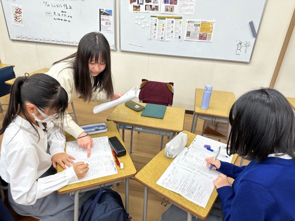 高3のBIG SISTERを中心に、高3が中1~中3の生徒の学習を手助けする学習会があります。憧れの先輩に勉強を教えてもらって中学生のモチベーションもあがり、高3も教えることで自分自身も成長する経験をします。他にも、部活動を終えてから帰宅前に宿題を仕上げたり、学習習慣を身に着けるためにStudy Hallを利用でき、19:00まで学習することができます。また20:00までオンラインでの質問もできます。