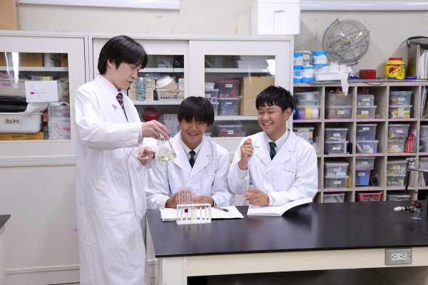 中学1,2年生では、週4時間の理科の授業とは別の枠組みで週1時間「理科実験」を実施しています。生徒にとって身近なもの、見たことがあるものを使って、興味・関心をより引き出すようなダイナミックな実験を行います。日常にひそむ科学を取り扱うことで、広い視点で自然現象を見る目を育て、現象について深く考える力が身につきます。