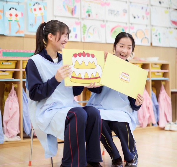 子どもの発達をうながすアイディアのタネを3 年間で基礎から育みます。言葉や体を使って子どもたちの五感を刺激するノウハウを培い、特に幼児教育の現場で注目されているダンスなどの力をつけます。また、併設のエトワール幼稚園で充実した実習ができることも大きな魅力。実際の現場で必要なことを実感し、普段の学習に活かします。進路についても手厚くサポートします。保育・こども系の指定校推薦が充実しており、保育・こども系だけでも大学・短大が42校、専門学校が1 4 校あります。普段の学習の積み重ねで夢を叶えるための進路が実現します!!