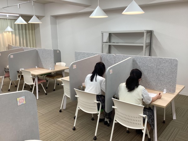 9月に自習室がオープンしました。新しい机・椅子で照明も勉強に集中できる環境が整いました。チューターの先生に質問ができるので、わはからない問題をすぐ解決できます。授業でわからなかったところを質問したり、宿題や課題をその日のうちに取り組むことができます。利用時間は下校時間を30分延長して、中学生は6時まで、高校生は6時30分までの利用になります。生徒たちは友達と「いつ行く?」と相談しているところです。