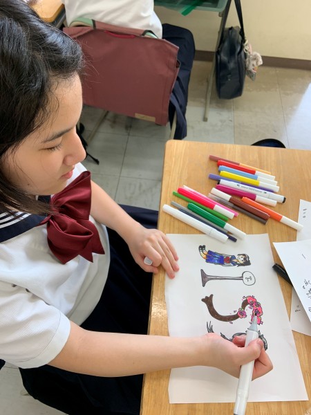 Clym 氏は、文字や形をモチーフに、自身の想像力を自由に表現する独創的なアーティスト。その発想をもとに、生徒たちは学校名 “JISSEN” の文字を使って、「House(家)」というテーマをひねりながら、オリジナルのデザイン作品を制作しました。
