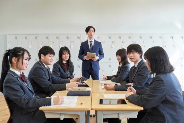 本学園は、個人研究・ゼミナールを通して論理的思考力や創造性を養う「本科クラス」と、英語環境の中で学ぶ「インターナショナルクラス」の2コース制を採用しています。「インターナショナルクラス」はAG(ADVANCED GROUP)/SG(STANDARD GROUP)で構成されており、英検2級以上を基準とするAGは英・数・理・社を各教科の専門知識を持つ外国人教員から学びます。英語学習に興味を持つ受験生を対象としたS Gは、英・数・社を外国人教員から学びます。