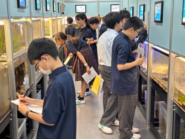 本校の4つの実験室には、ICT設備を完備。実験や観察を中心に知識を体得します。化学物質の結晶や火山灰を電子顕微鏡で観察したり、国内の水陸生態系を再現した実験室では、さまざまな動植物の生活ぶりをじっくりと観察できます。中学3年生の授業では、これまで行った実験のマニュアル動画を作成します。完成した動画は、下級生の授業で紹介されます。