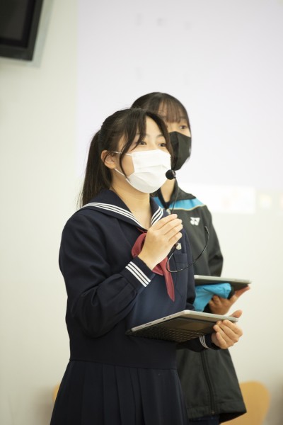 未来デザインの授業は、正解がない分、難しいと感じます。でも、私は社会のためにどうしたらいいのかを考えることが好きなんだ、と未来デザインの授業を通して知りました。これからの社会は、私たちが考え、築いていかなければいけないと気づいたんです。