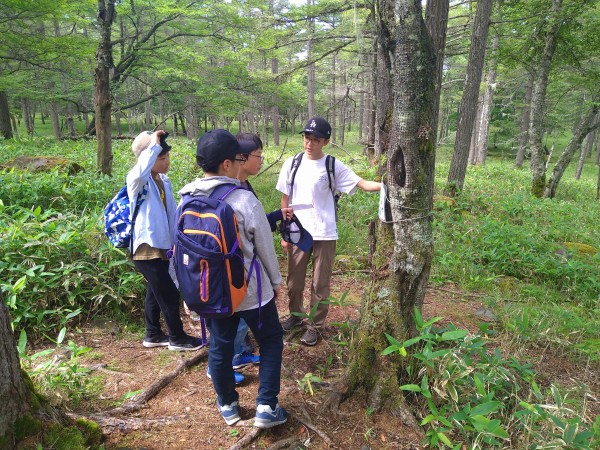 中一は長野県蓼科高原を拠点に2泊3日の行程で、バーベキューや魚のつかみ取り体験、車山高原ハイキング、時計作り体験を行い、最終日には北八ヶ岳千駄刈(せんだがり)の森でタイムオリエンテーリング(写真)を行います。