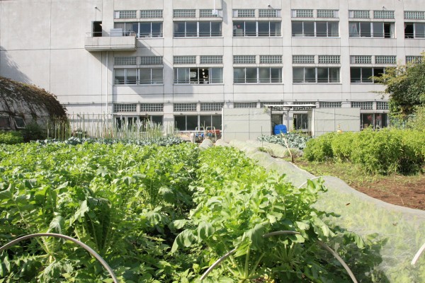 鷗友学園は世田谷区の住宅街にありながら、緑豊かでのびのびとした環境です。中学高校の全学年で運動会が実施できる広いグラウンドを中心に、園芸の授業で使用する農園や大きく立派な藤棚など、校内のいたるところに緑があり、生徒達の憩いの場となっています。特に今の季節は新緑が美しく、晴れた日にはキラキラとした日差しであふれています。