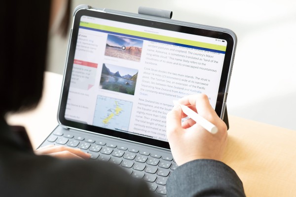 2023 年度より、生徒一人ひとりにiPad を導入しています。基本の調べ学習だけでなく、生徒が自主的に学習を進める環境が整います。動画撮影や、プレゼンテーション、課題提出など学習を効果的にサポートします。