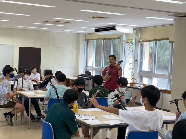 7月に4泊する沖縄修学旅行では、平和学習で沖縄戦の講話を聴き、伝統芸能(エイサー・琉球舞踊・三線)の文化を体験し、美ら海水族館見学やマリンスポーツ体験、そして沖縄本島北部の「やんばる」で民泊をして環境プログラムとして外来植物の除去の体験をしています。二学期に文化体験を活かした学年全体での合奏の発表と、旅行を通しての個人別研修報告を実施します。