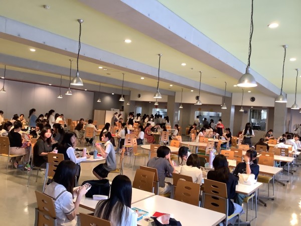 大きな窓から中庭が見えるカフェテリアがあり、お昼休みにはお腹をすかせた生徒たちでにぎわっています。カフェテリアで食べてもよし!テイクアウトもよし!で便利に活用されています。焼きたてのパンはどれも好評で、シュガー揚げパンやスイートポテトデニッシュは特に人気です!日替わりの定食に加え、イベントメニューもあります。ローストビーフ丼のときには生徒の目の色が違う!?