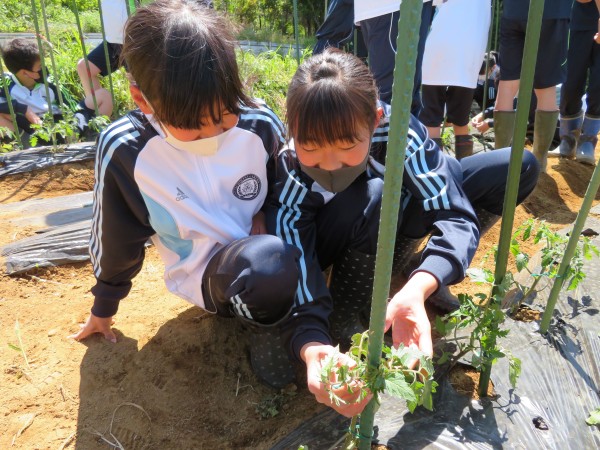総合的な学習の時間において、校内にある学苑農場にて自分たちで土を耕し、作物を栽培しています。野菜が育つまでこまめな世話が必要ですが、作物を収穫する喜びや達成感は大きく、野菜作りのすべてが豊かな感性の育成に結びつきます。自然を学び、自己を発見し、自己を耕し、自己を育てる時間として創立当初より大切にしています。