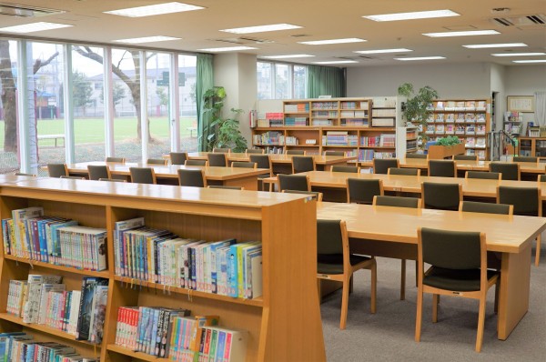 1F正面玄関を入るとすぐ図書館。大きなガラス張りの窓からは外が見え開放感があります。ブラウジングコーナーに理系・文系ともに楽しめる雑誌-科学・歴史・スポーツ・ファッションと幅広いジャンルの約40種類!ソファーに座って物思いにふけってもよし。DVDでミニシアター気分も味わえます。学習用ブースもありタブレットを使って調べモノもOKです。