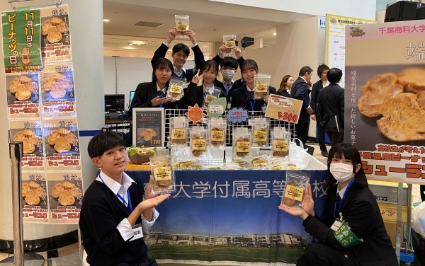 本校商業科は、8 年前より千葉県内の地元企業とともに新商品の開発に取り組んでいます。試験勉強や教室での学びに留まらず、高校生のうちに社会と関わることで視野が広がり、いろいろな学びを得ることができます。