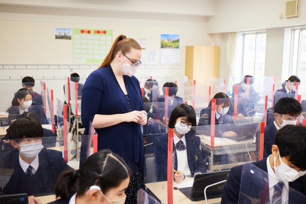 本校では日本人教員の文法を中心とした授業とは別に、週に4時間洋書の教材を使いながら、International Teachers(英語ネイティブ教員)のAll Englishの授業で、総合的な英語力の向上を目指し学習しています。学習内容をすぐに実践で試すことができるため、英語に対する関心を高め、学習意欲の向上につながっています。