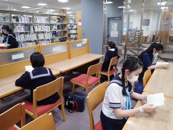 こども園から大学までワンキャンパスになっているため、キャンパス内には生徒の利用できる施設がたくさんあります。その中でも蔵書数59万冊の大学図書館では本を読んたり勉強したりすることができます。生徒たちは中高部の図書室と大学の図書館を上手に利用し、さまざまな本や言葉との出会いを楽しみ、思考力や探究心を広げています。