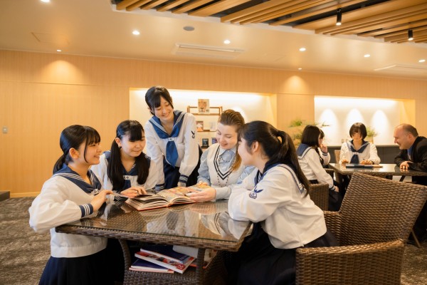 2022年3月、聖和学院はCo-Creation Plazaを新設。未来に向けて多様性とグローバルな視点を持ち、創発的なコラボレーションで新たな価値を創り出す複合施設です。ラーニングコモンズ、クリエイションカフェ、ラーニングスペース等、6つの機能からなり、主体的な学び・グループワーク・リラックス空間として生徒たちは活用しています。