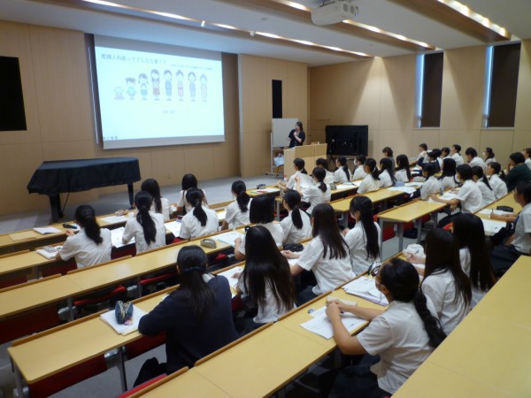 日本医科大学付属病院で女性診療科・産科の先生をお招きし、生命倫理を考える機会を設けました。先生からは医師を志した理由、やりがい、苦労、先生自身がどのように出生前検査等の倫理的問題に向き合っておられるのか等のお話をいただきました。そして検査結果が陽性時のご夫婦の葛藤やその後の判断、心のケアなどの話題提供を受け、生徒同士で感じたこと考えたことをわかち合いました。