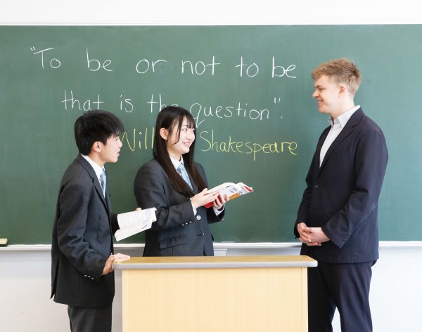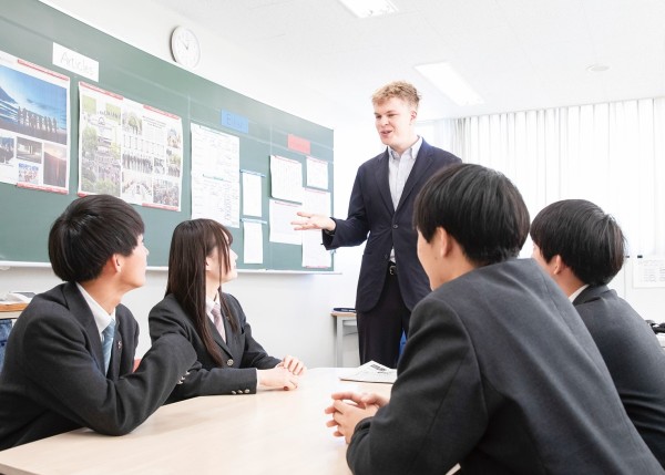 英語会話は、1 クラス2 名の外国人講師による少人数制です。修学旅行先では外国人留学生とのディスカッションをするなど、聞く、話すの機会を多く設定します。4 技能の向上を重視しています。