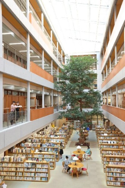 毎週40冊の新着本と充実のコーナー展示で、来るたびに新しい本との出会いがあるメディアセンターは「受験の決め手となった」「友人とおしゃべりしながらソファで雑誌を読む時間が大好き」と生徒から大好評。