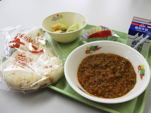 「会食」と呼ばれている当校の給食は、学園内の厨房で手作りされており、安全な食材を使用し、栄養バランスはもちろん季節や行事にちなんだメニューとなっています。1月の「学校給食週間」には、アメリカやインドなどの世界各国の料理が提供されました。生徒達は、いただくまでの過程で携わっている方々に感謝をし、マナーを学びながら美味しくいただきます。