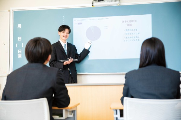 すべてのホームルーム教室でWi-Fi とプロジェクタータイプの電子黒板が利用できます。通常の授業だけでなく、放課後は部活動などでも活用されています。感染症拡大の中、オンラインでの授業もスムーズに行われました。