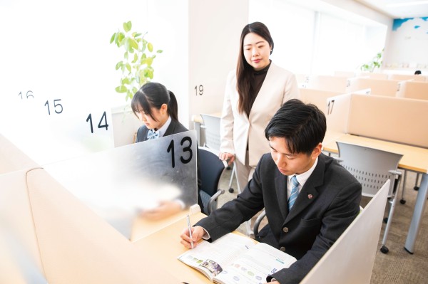 約50 席の自習室に、6 つの個人指導ブース。専属スタッフが生徒一人ひとりをサポートします。