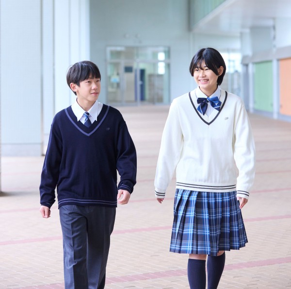 創立100周年(2028年)を見据えた記念事業の一環で、制服のデザインを一新しました。清潔感漂うアクセントカラーの鮮やかな「ブルー」は、八王子市の鳥であるオオルリの「瑠璃色」をイメージしました。これまで築き上げた「八学らしさ」と、これから創り上げる「新しい八学」を表現し、明るいイメージの中に落ち着いた雰囲気を併せ持つ機能的な新制服であります。