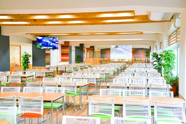 本校は学食があり、もちろん中学生の利用ができます。高校生と昼休みの時間をずらしているので、中学生だけで学食を利用することができますので、広々とゆっくり昼食をとれます。また、お弁当持参の場合は中庭にあるベンチでも取れますので、好きな場所で時間を過ごすことができ、午後の授業に向けたエネルギーチャージができます。